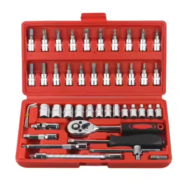 46 Piece Wrench Barrel Bit Combination Toolbox Red – JOGO DE CHAVE DE CATRACA