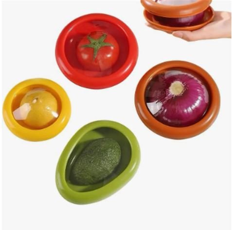 POTE HERMETICO DE SILICONE PARA ARMAZENAR FRUTAS E LEGUMES, REUTILIZAVEL COM TAMPA ELASTICA, KIT COM 4 PECAS