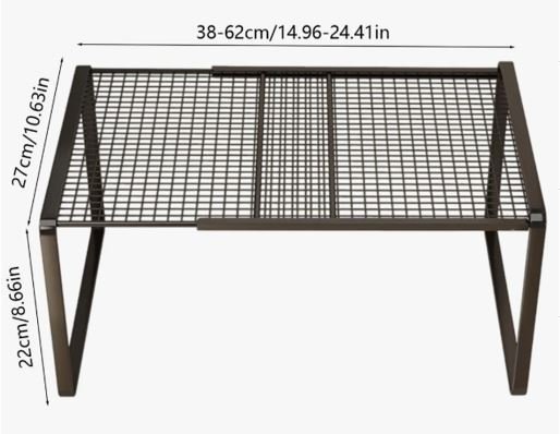 PRATELEIRA ORGANIZADORA EXPANSIVEL PARA ARMARIO OU BANCADA, FABRICADA EM FERRO, UTILIZADA PARA ARMAZENAMENTO DE UTENSILIOS E OBJETOS DIVERSOS