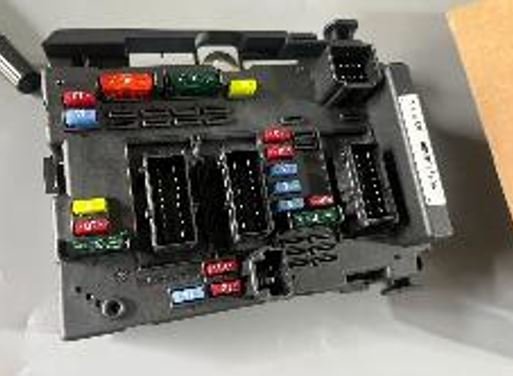 CAIXA DE FUSIVEIS BSM, COM MULTIPLOS FUSIVEIS E RELES DE DIFERENTES CORES E TAMANHOS, ELE É RESPONSAVEL POR DISTRIBUIR ENERGIA PARA VARIOS SISTEMAS DO CARRO
