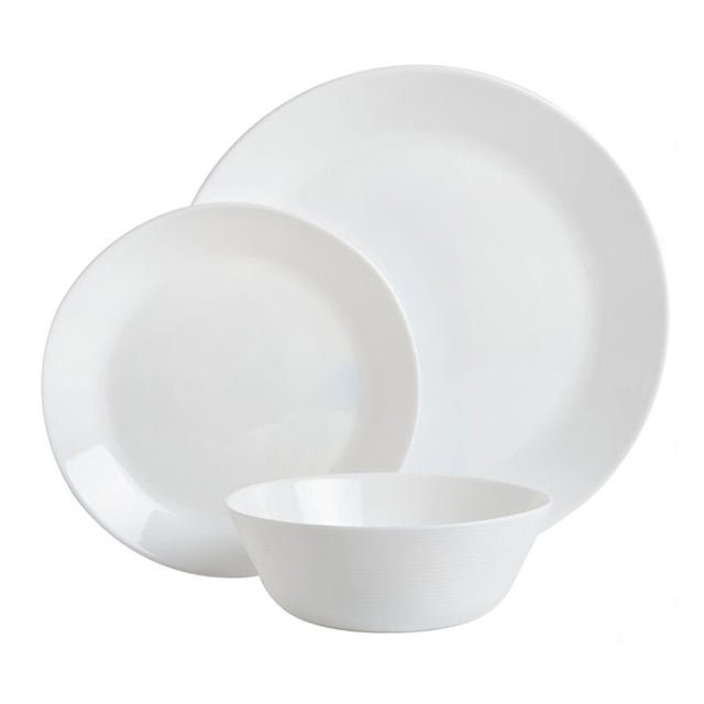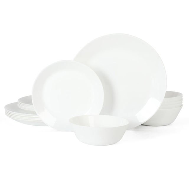 CONJUNTO DE JANTAR EM VIDRO OPALINO TEMPERADO BRANCO,