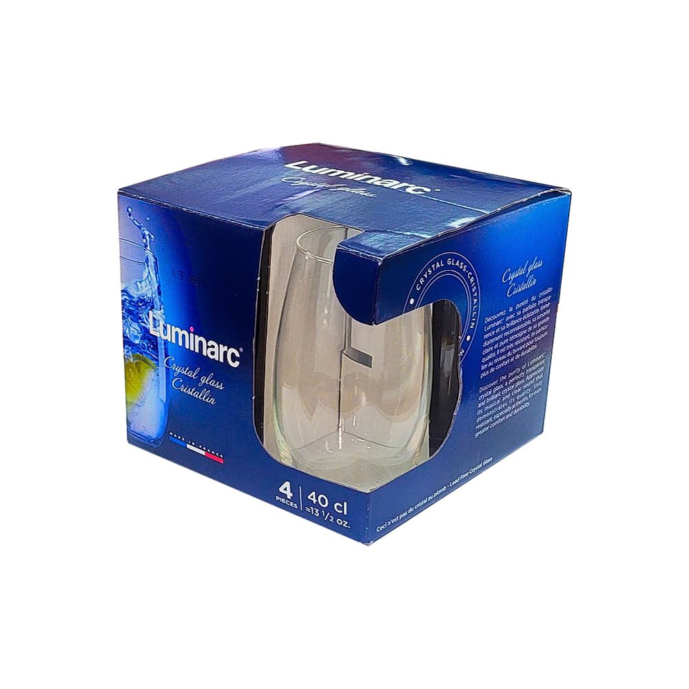 COPO EM VIDRO SODO CALCICO, MODELO MENADES, COM CAPACIDADE PARA 400ML, JOGO CONTENDO 4 PECAS, MARCA LUMINARC = V5964