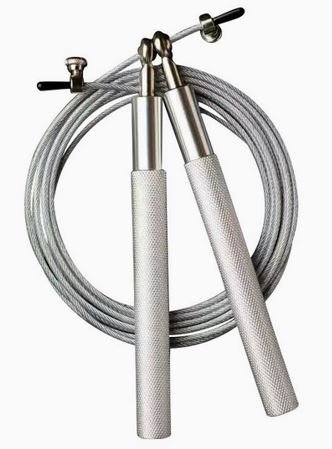 / CORDA DE PULAR PARA ATIVIDADE FISICA, COMPOSTA POR CABO FLEXIVEL DE ACO REVESTIDA COM MATERIAL PLASTICO E EMPUNHADURAS DE ROLAMENTO PARA ROTACAO