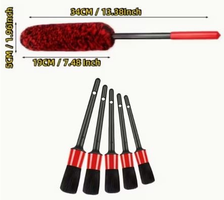 ESCOVA DE LIMPEZA CILINDRICA AUTOMOTICA COM HASTE E CABO, COMPOSTO POR FIBRAS SINTETICAS COM CABO EM PLASTICO, KIT COM 5 PECAS