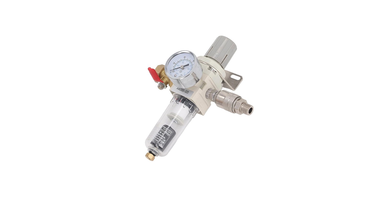 FILTRO DE AR COM SEPARADOR DE UMIDADE PARA SISTEMAS PNEUMATICOS, FABRICADO EM LIGA DE ALUMINIO, PRESSAO MAXIMA DE TRABALHO 150 PSI, FLUXO DE AR 35 L POR MINUTO. ACOMPANHA CONECTORES METALICOS PARA INSTALACAO EM COMPRESSORES DE AR E FERRAMENTAS PNEUMATICAS, GARANTINDO FORNECIMENTO DE AR LIMPO E FILTRADO.