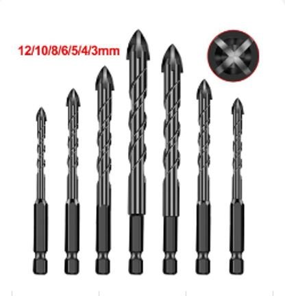 / JOGO COM SETE BROCAS MULTIUSO FABRICADAS EM METAL DURO, COM HASTE HEXAGONAL, INDICADAS PARA PERFURACAO DE MADEIRA, CERAMICA, VIDRO, PLASTICO E METAIS LEVES, EM DIVERSOS DIAMETROS