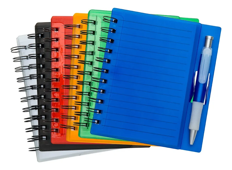 / KIT COM 10 CADERNOS DE ANOTAÇÕES PAUTADOS COM CAPA MALEÁVEL EM PLÁSTICO