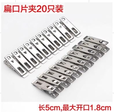 KIT COMPOSTO POR 20 UNIDADES DE PRENDEDORES METALICOS TIPO CLIPE PARA FECHAMENTO DE EMBALAGENS. FABRICADOS EM ACO INOXIDAVEL, E MECANISMO DE PRESSAO MANUAL. PRODUTO REUTILIZAVEL, DE USO DOMESTICO. DIMENSOES APROXIMADAS DE 5 CM DE COMPRIMENTO, COM ABERTURA MAXIMA DE 1.8 CM.