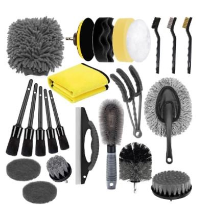 KIT DE ESCOVAS PARA LIMPEZA AUTOMOTIVA CONTENDO 5 PINCEIS DE DIFERENTES TAMANHOS E 2 ESCOVAS COM CERDAS DE POLIAMIDA E CABO EM PLASTICO. ACOMPANHA PANO DE MICROFIBRA