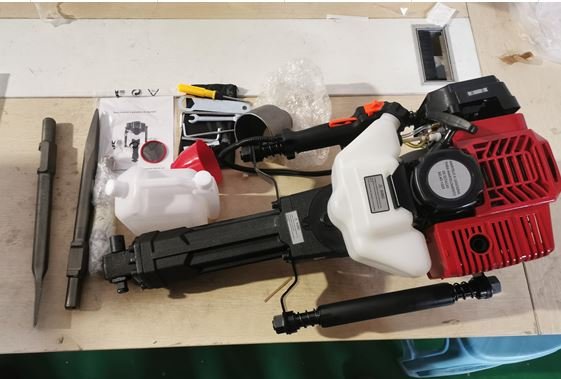 MARTELETE ROMPEDOR COM FUNCIONAMENTO A GASOLINA. EXECUTA 1500 ACERTOS POR MINUTO, VELOCIDADE VARIAVEL, POTENCIA 1900W. ALIMENTADO POR MOTOR DE 52CC, DOIS TEMPOS. ACOMPANHA ACESSORIOS