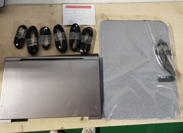 TELA TRIPLA DE LCD PARA NOTEBOOK E TABLET DE 15″, RESOLUÇÃO DE 1920X1080 PIXELS COM CASE EM TECIDO PARA ARMAZENAMENTO