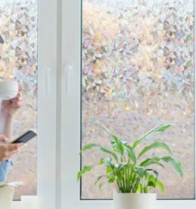 PELICULA DECORATIVA PARA VIDRO EM PVC COM FIXAÇÃO ESTÁTICA SEM ADESIVO