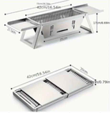 CHURRASQUEIRA DOBRAVEL E PORTATIL EM ACO INOX COM FUNCIONAMENTO A COMBUSTIVEIS SOLIDOS, ACOMPANHA GRELHAS