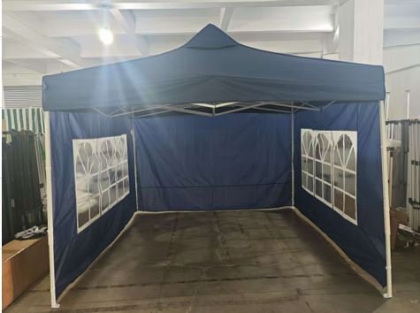 TENDA COM ESTRUTURA EM METAL COM COBERTURA EM TECIDO DE OXFORD AZUL