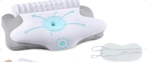 TRAVESSEIRO ERGONOMICO MULTIFUNCIONAL COM DESCANSO DE PESCOCO, POSSUI 2 NIVEIS DE ALTURA, FEITO EM MATERIAL DE ESPUMA COM CAPA REMOVIVEL EM TECIDO